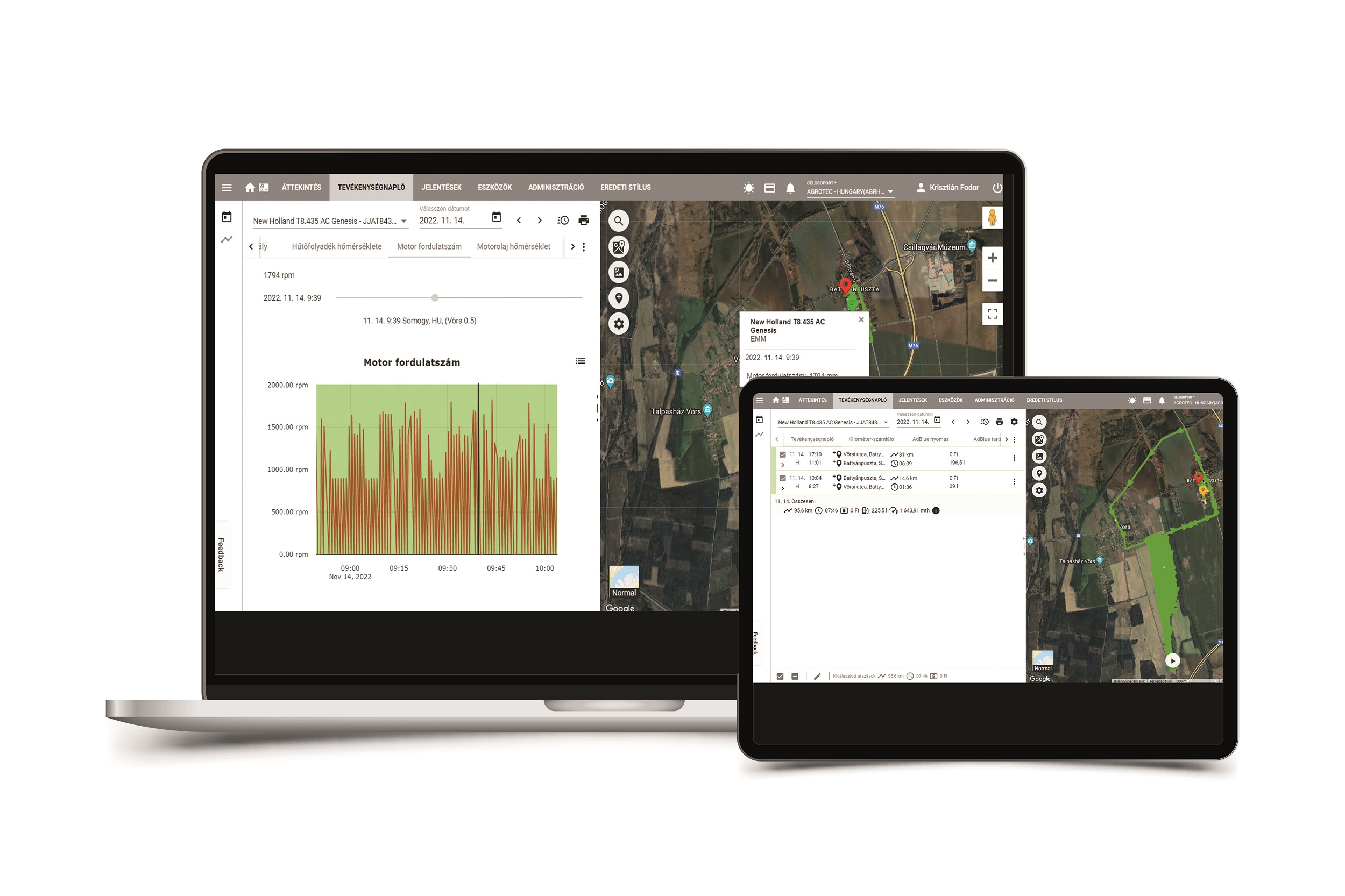 Erre a kihívásra az AGROTEC Magyarország Kft. egyik válasza az „A connect” szolgáltatás. A név finoman utal a kapcsolatra, amely az AGROTEC és a gazdák között lassan 10 éve fent áll. A szolgáltatás alapja egy flottakövető rendszer, mely kiegészül a fejlett erő- és munkagépek vezérlésdiagnosztikai hálózatának átfogó ellenőrzésével és GPS alapú nyomon követésével. Flottakövető rendszereknél már nem újdonság az esemény alapú figyelmeztetések küldése a megbízott személynek vagy tulajdonosnak, de az A connect ezeket az értesítéseket helyspecifikus üzemi paraméter figyeléssel és igény szerinti naplózással kezeli majd az adatokat tárolja.