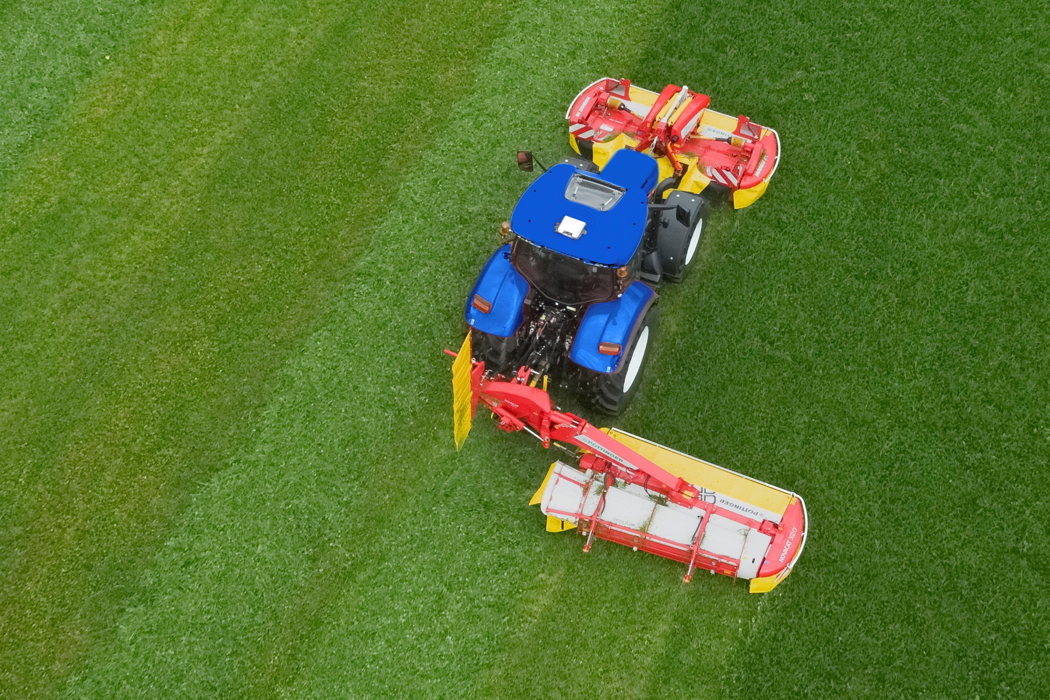 Amennyiben ipari méretekben gondolkozunk a takarmányelőállításban, vagy kiemelt célunk a költségcsökkentés ezen a téren, a Pöttinger egyedi kaszakombinációit sem hagyhatjuk figyelmen kívül. A tárcsás kaszák ilyenkor egyszerre üzemelnek fronthajtással és vontatva, megsokszorozva a munkaszélességet. „Egy elöl függesztett Novacat 301 Alpha Motion 3,04 méteres munkaszélességét egy hátul függesztett Novacat 352 Cross Flow-val további 3,46 méterrel tolhatjuk ki. A Cross Flow rendszer itt ráadásul egy Pöttinger által szabadalmaztatott csigás rendáthelyező megoldást takar, amivel minden levágott termény áthelyeződik a frontkasza vágásszélességére. Ezzel a megoldással kiválthatóvá válik a rendsodrás például. Így kevesebb üzemanyag fogy, kisebb a taposás, hosszabb távon jobb maradhat a zöldtakarmány minősége.” – sorolja az előnyöket Forró Péter. Ilyen téren a szakember szerint érdemes lehet a Novacat X8, a Novacat A9 és A10 képességeivel megismerkedni. Ugyanis kombinációban ezek felszereltség függvényében 12 ha/óra területteljesítményt is biztosíthatnak.