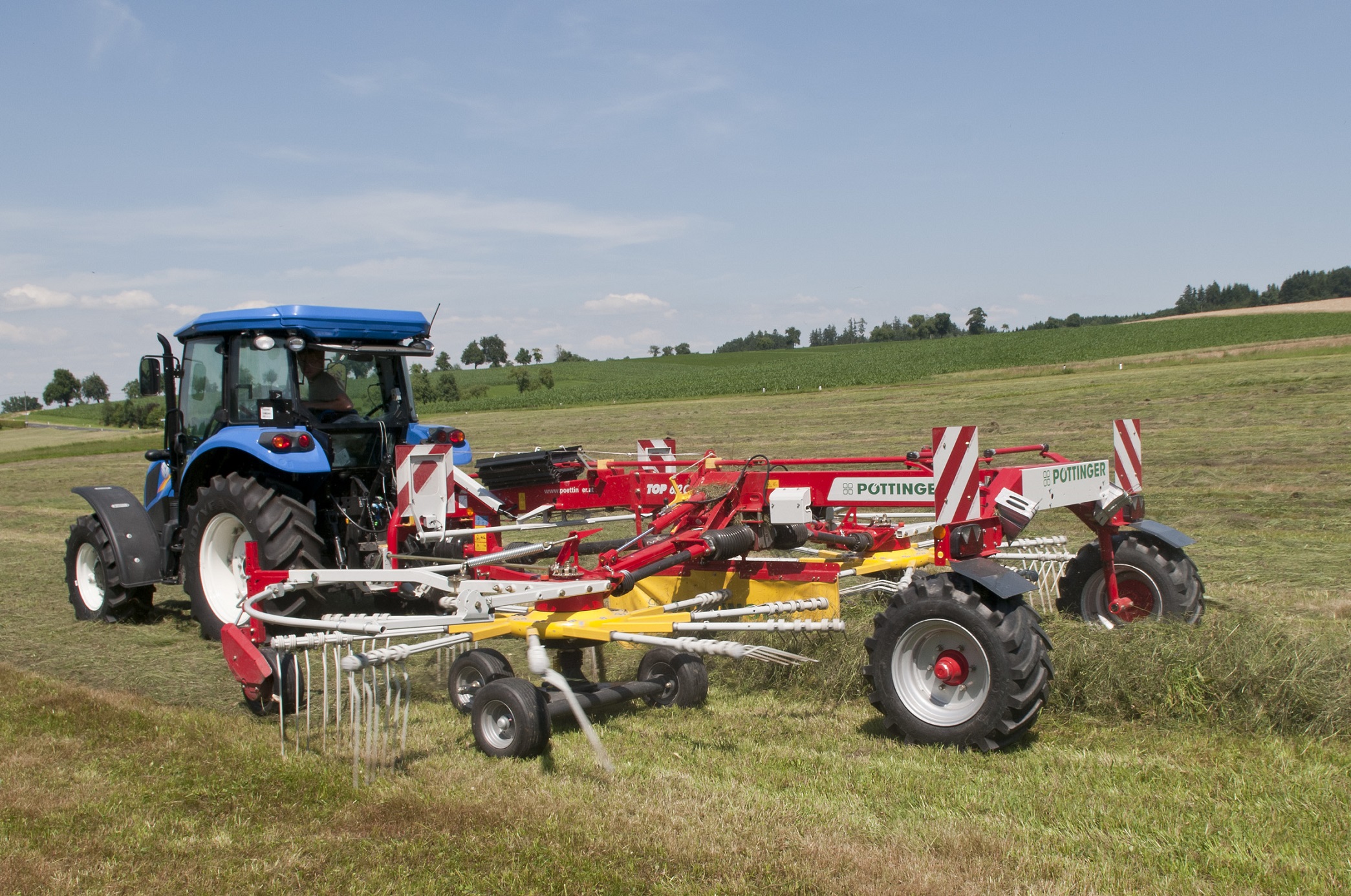 „A Pöttinger rendsodróknál több egyedi megoldás segíti a munkát. Ilyen például a fogak hossza és alakja. Ezeket a forgásiránnyal megegyezően meghajtották. A gép nem üti meg, nem veri le a tápanyagban gazdag leveleket. A talajkövetést a MULTITAST kerekek segítik, amelyek akadály vagy talajdőlés estén megemelik a rotort, így nem kerül szennyeződés a takarmányba. A hárompontos billenőbak stabilizációnak köszönhetően a TOP rendterítők a kanyarokban kilengés nélkül követik a traktort. Míg a munkamagasság, a tandemtengelyek keresztirányú dőlése, valamint a rendponyvák is gyorsan, könnyedén állíthatóak a munkagépeken.”