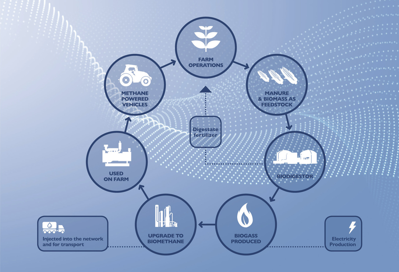 Ehhez megalkotta saját energia független farm modelljét (Energy-Independent Farm), amely egy zártláncú CO2 semleges termelési rendszer. Az elképzelés az idei évben válhat megvalósíthatóvá, amikor kereskedelmi forgalomba kerül a gyártó metán-hajtású erőgépe, hiszen ezzel lezárja a CO2-semleges ciklus körét a szántóföldről az energiatermelésre és vissza a szántóföldre.