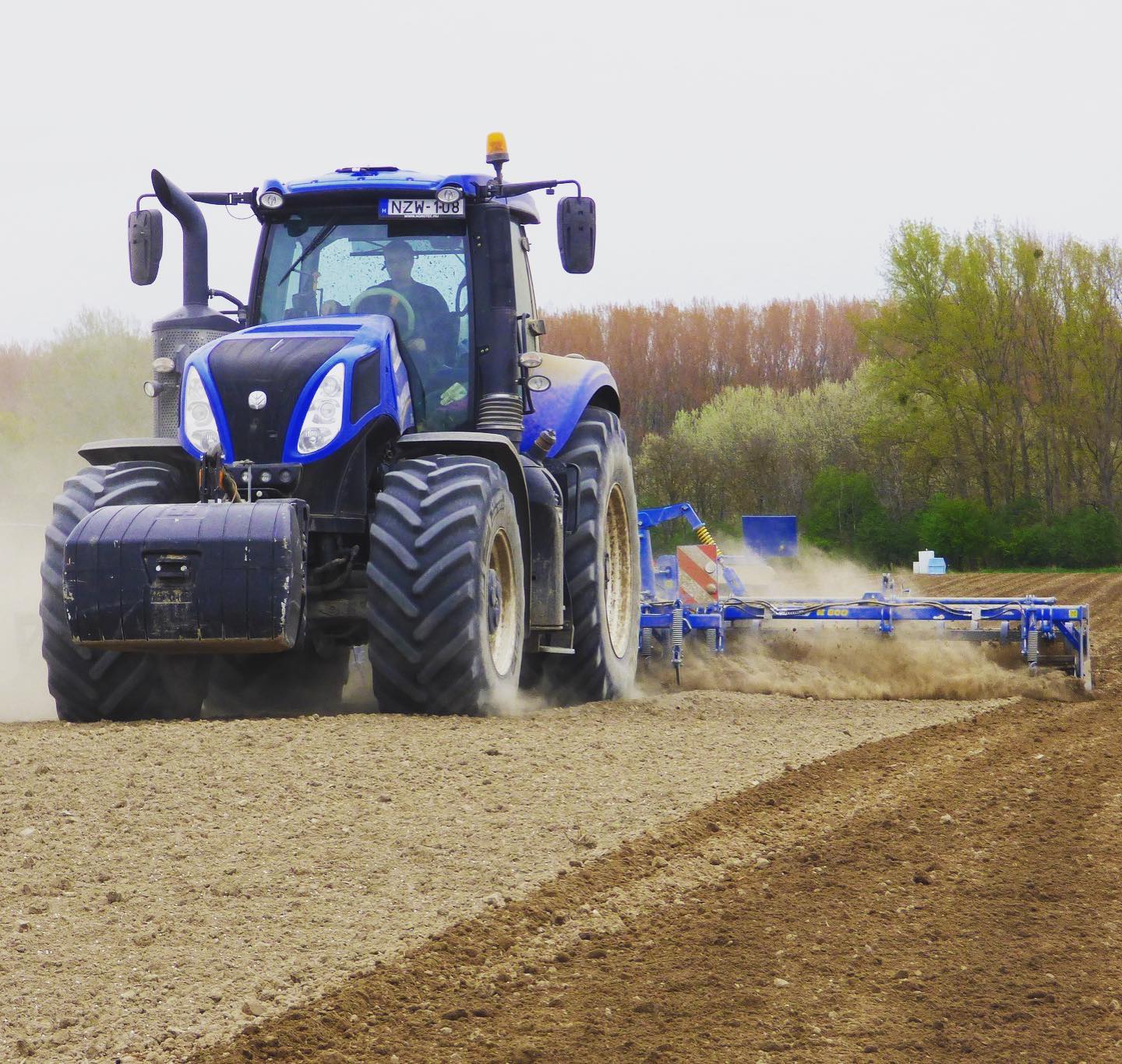 A talajmunkák nehezét a cégcsoport 2 darab T8.410-es és egy T8.360-as New Holland traktorra bízza, amelyeket kategóriájuk legnagyobb, 3450 mm-es tengelytávja, kimagasló motor- és hidraulikateljesítménye és kiemelkedő fordulékonysága miatt kedvelnek a gazdák.
