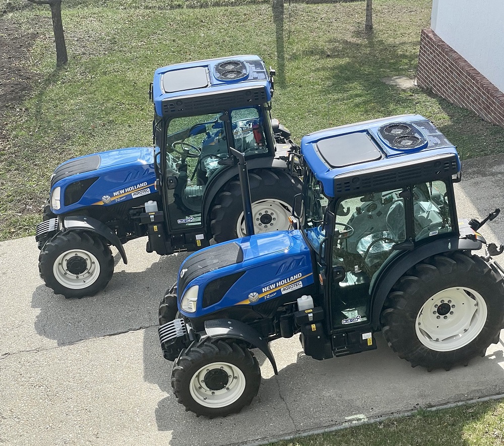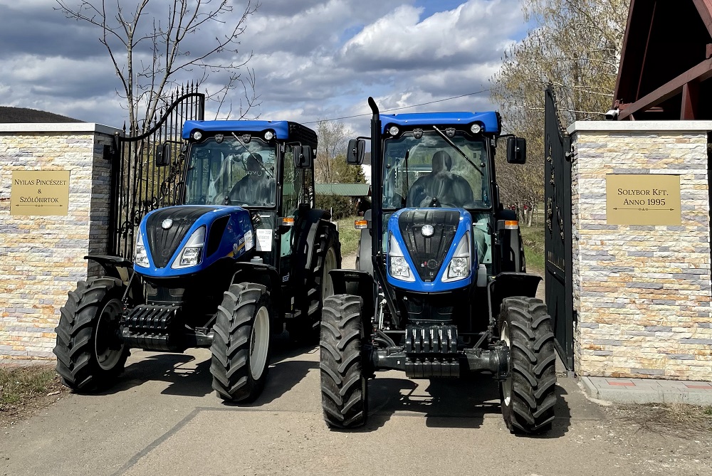 Nyilas Jánoséknál a New Holland Braud szőlőkombájn mellett több New Holland erőgép is segíti a munkavégzést. Ezek között találunk hagyományos nyomtávú TL 90A-s traktorokat épp úgy, mint modern T4 95F és T4 100F keskeny nyomtávú kertészeti traktorokat. Tulajdonosuk szerint sok előnyük van, de amit „a kék” igazi erősségének tart, az a megbízhatóságuk.