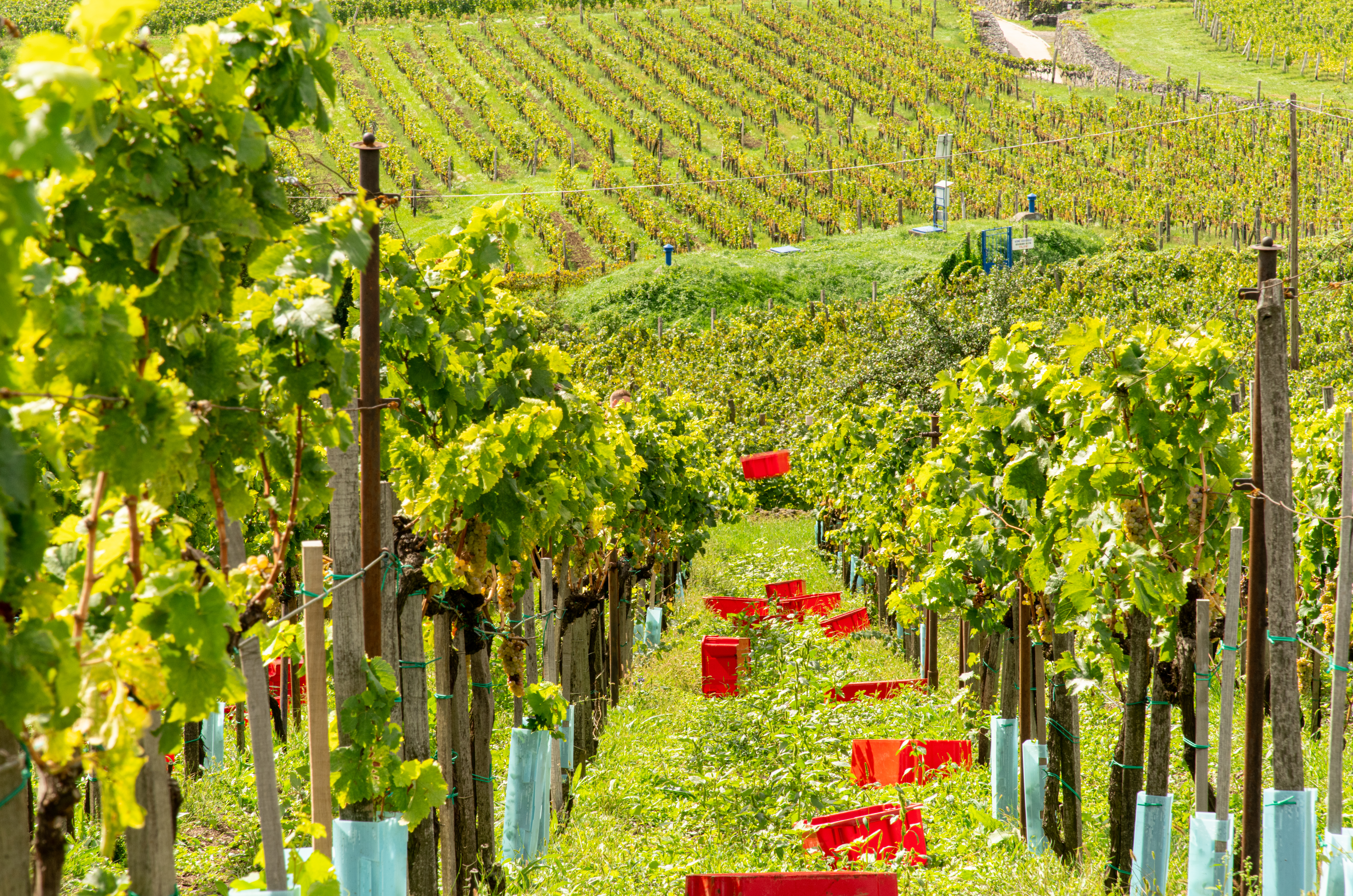 Kreinbacher pezsgők előállításához ugyanis modern ültetvényes gépek nélkül az extrém időjárás szorításában épp a legfontosabb hiányozna: a kifogástalan gyümölcs.
