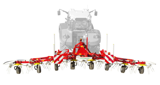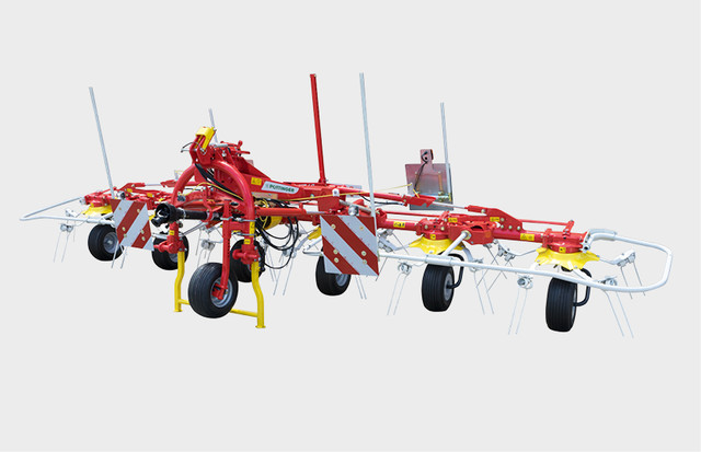 A Pöttinger négy-, hat- vagy nyolcrotoros HIT hárompontos rendterítőit az új DYNATECH rotortechnika és az átgondolt felépítésű szerelvénybak még inkább kiemelkedővé teszi.